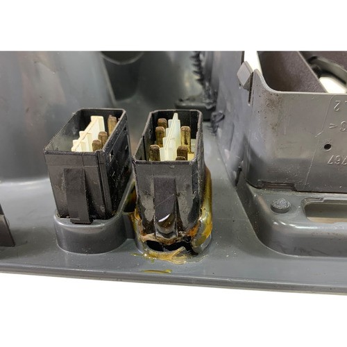 Moldura Painel Interno Esquerdo Mercedes Benz Sprinter 2002 2003 2004 2005 2006 2007 2008 2009 2010 2011 2012 Código da Peça: A9016801439 USADO DETALHE (FALTA BOTÃO, REPAROS NA PEÇA, PLUGS QUEBRADOS)